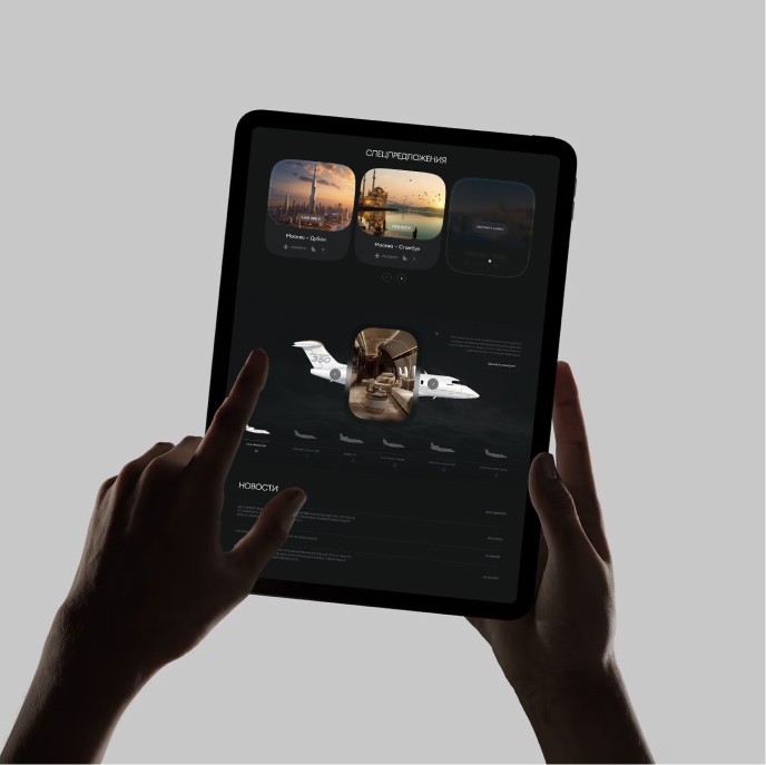 Визуальной метафорой стал воздушный поток — чистая и мощная форма движения, воплощённая в дизайне. Мы создали лаконичную, но роскошную эстетику, где свет, пространство и ритм шрифтов формируют ощущение лёгкости и престижа. Каждый элемент интерфейса работает как часть аэродинамики бренда — точный, изящный и технологичный.